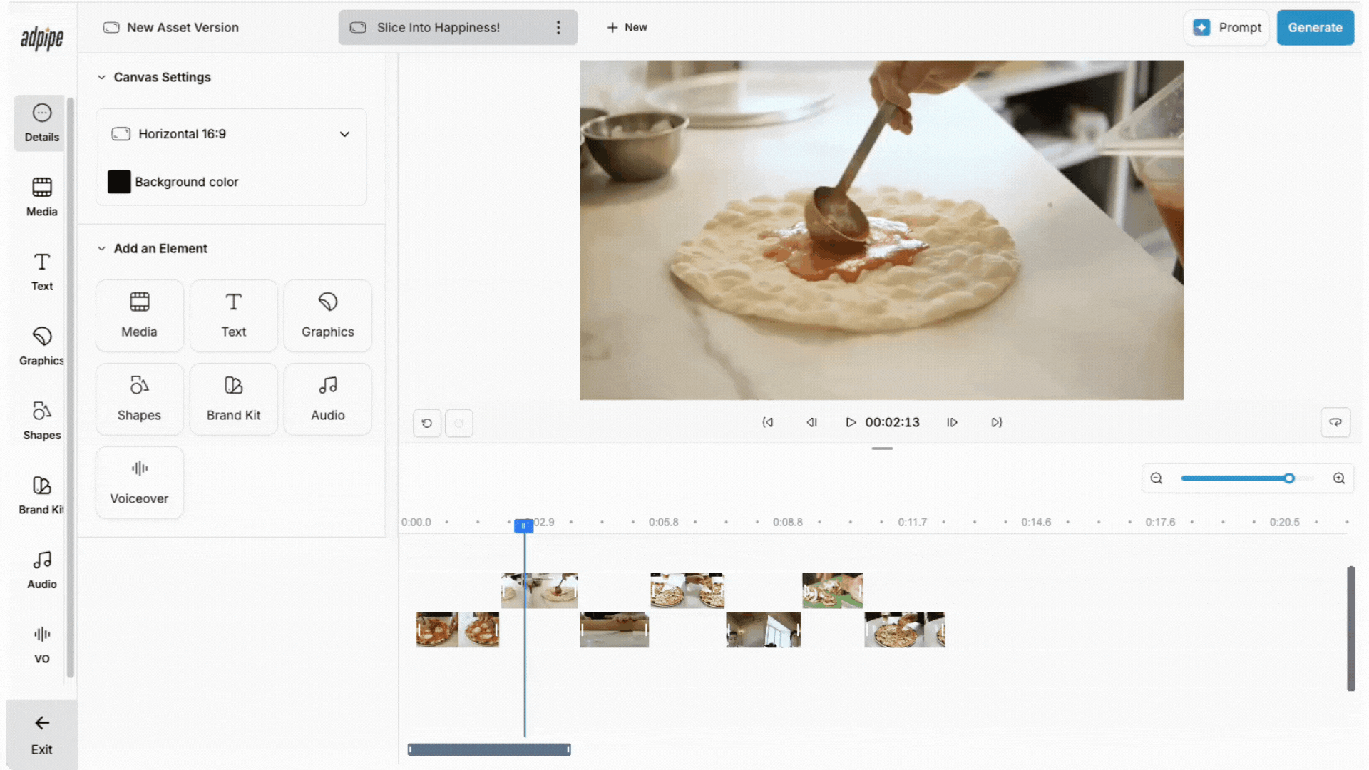 - Press Generate and the voiceover will automatically appear on your timeline.