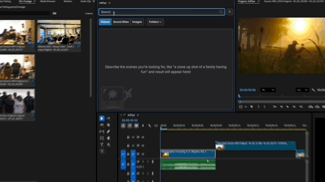 You can search your AdPipe cloud library for video clips, soundbites, and images using natural language queries.